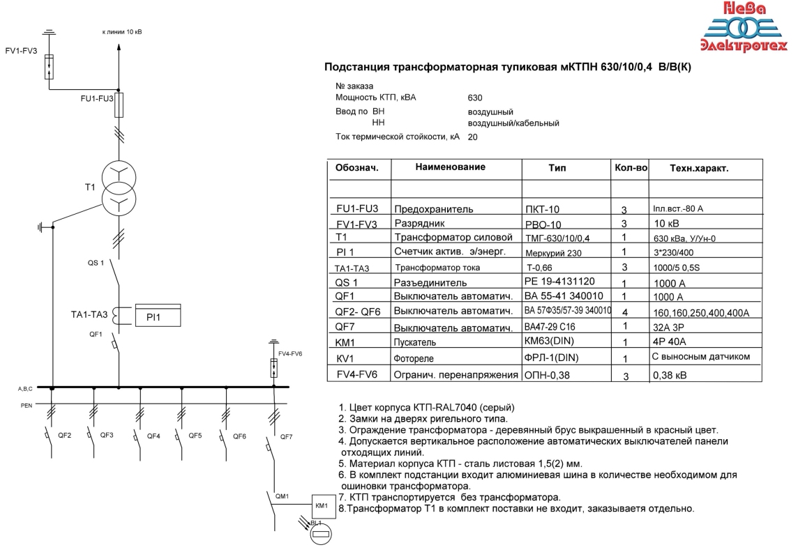 Мощность подстанции, кВА